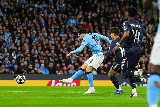 第24分钟,维尼修斯再次利用速度突破了曼城的防线,但最后的射门没能命中目标。