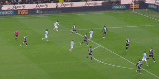 这一战术调整很快奏效,法国人在第二次尝试射门时取得了进球:第38分钟,尤文后卫凯利直接起球找前锋,耶尔德兹左侧高速插上,尽管对方封堵很严,但耶尔德兹成功扛住对手,横传门前,博加及时赶到推射入空门。博加在中路把自己的速度特长发挥得很好,频繁冲击乌迪内斯后卫之间的空当。他在上半时结束前还有另一次机会:孔塞桑前场带球突破一脚直塞,但博加的射门被门将奥科耶用脚挡出。