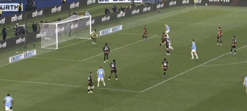 50′50″禁区线附近远射迫使只有两次首发经验的拉齐奥门将莫塔鱼跃扑救。随后接萨勒马克尔斯横传再次在弧顶射门踢呲,弗法纳小禁区狮子摇头无奈角度太正。