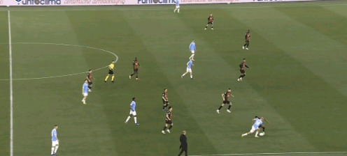 ↑而在这次进攻前,米兰的反击中,美队持球,没有给启动的莱奥传直塞。
