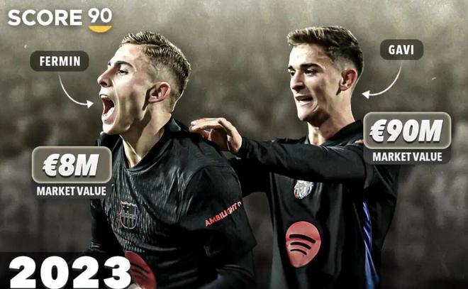 本赛季,他个人转会市场预估价格来到了1亿欧元,相比之前800万提升了太多太多。跟加维正好相反。