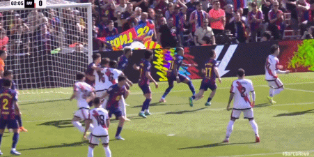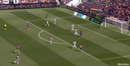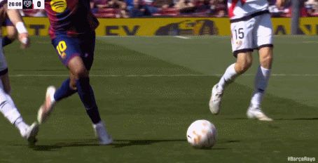 第22分钟,亚马尔外脚背传中,拉菲尼亚打门没打好
