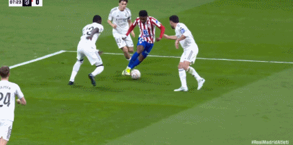 第33分钟,朱利亚诺-西蒙尼精妙脚后跟做球,卢克曼推射破门,马竞1-0!