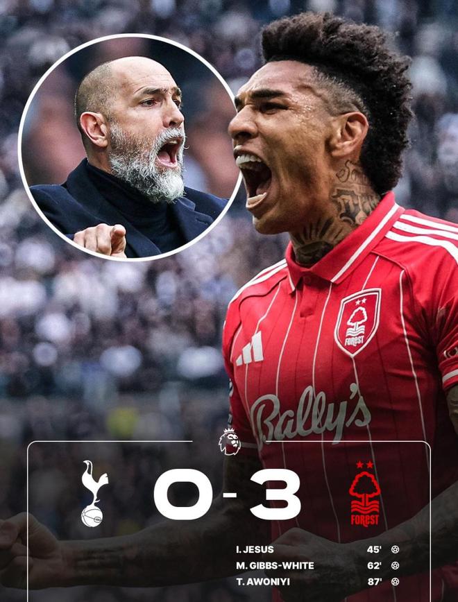 在主场面对诺丁汉森林,热刺以0-3完败。对手三次射正全部转化为进球,而热刺14次射门却颗粒无收,这种效率差距几乎是整支球队状态的缩影。
