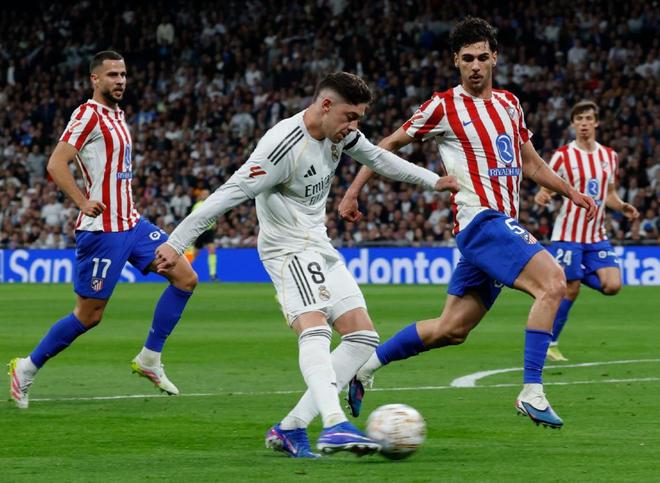 为了能够在主场复仇同城死敌,皇马沿用了442的阵型,首发门将卢宁,F加西亚、赫伊森、吕迪格和卡瓦哈尔构筑后防,居莱尔、琼阿梅尼、皮塔奇和巴尔韦德坐镇中场,双箭头则是维尼修斯搭档迪亚斯。