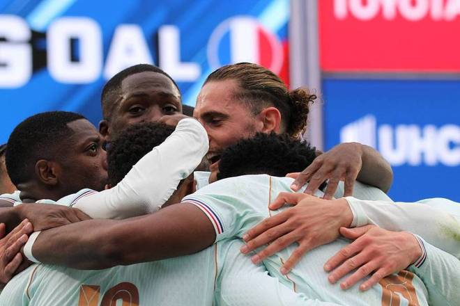 然而人数处于劣势的法国队却在第65分钟扩大优势,奥利塞送助攻,利物浦射手埃基蒂克轻松挑射破门。