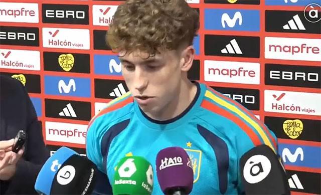 在西班牙与塞尔维亚的热身赛中,维克托-穆尼奥斯迎来了国家队首秀并斩获首球,帮助斗牛军团在主场3-0完胜对手。赛后,他在混合区接受了媒体采访。