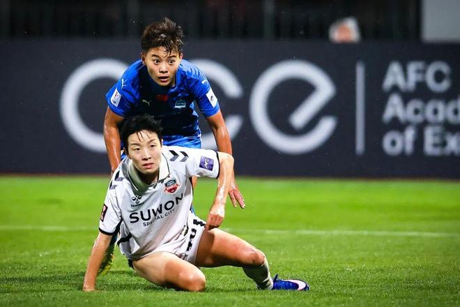 上半场第12分钟,崔宥莉右路横扫门前,池笑然包抄空门轻松得手,武汉车谷江大女足0比1落后水原女足!