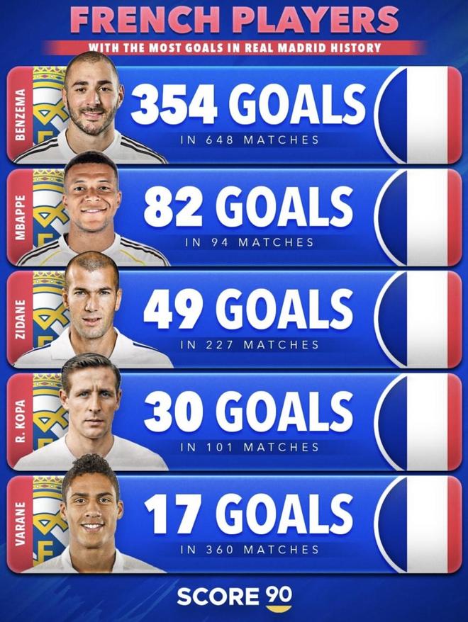 直接把法国和巴西在皇马的进球名单拉出来对比,你会发现一个很有意思的现象:两边的强,完全不是一回事。法国队这边,本泽马一个人就顶起了半边天,354个进球的数据确实硬。但巴西队那边更离谱,不光前锋能进球,连边后卫都能排进队史前几。很多人总在争到底是法国球员厉害,还是巴西球员更猛,其实看这两份名单的分布就明白了。是选那种一个顶级核心带队的打法,还是选全位置都能开火的整体火力?数据背后的差别,可能比你想象的还要大。到底谁才是伯纳乌历史上真正的“外援天花板”?咱们拿数据说话。(数据截至2026年3月25日)