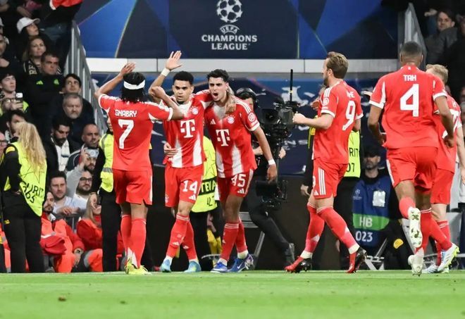 在这种高压之下,丢球是迟早的事。皇马的后防线抵抗了40分钟,终于顶不住了。他们在中场传球失误,拜仁抓住机会由格纳布里直塞,路易斯·迪亚斯反越位成功推射远角建功,这种单刀直入的方式,让皇马防不胜防。
