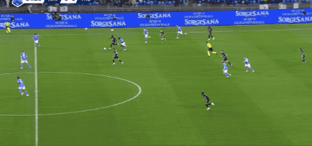 第18分钟,米兰打出快速反击,帕夫洛维奇插入禁区,但脚步没能调整过来,甚至没能完成射门。