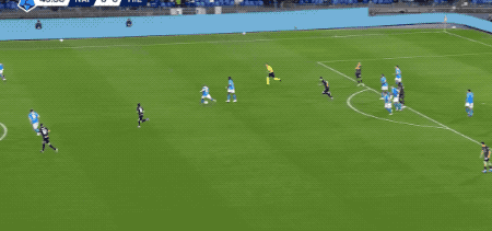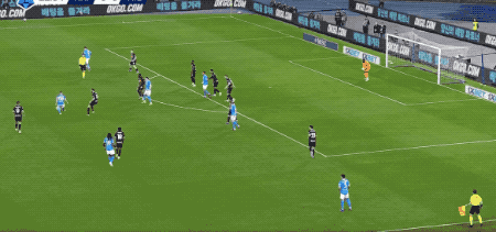 第50分钟,吉奥瓦尼反击中轻巧过人,之后的射门也颇具威胁,迈尼昂迅速倒地,将球扑出。