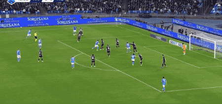 第23分钟,斯皮纳佐拉轻巧晃开福法纳和巴尔泰萨吉的防守,突入禁区兜射远角,皮球差之毫厘。