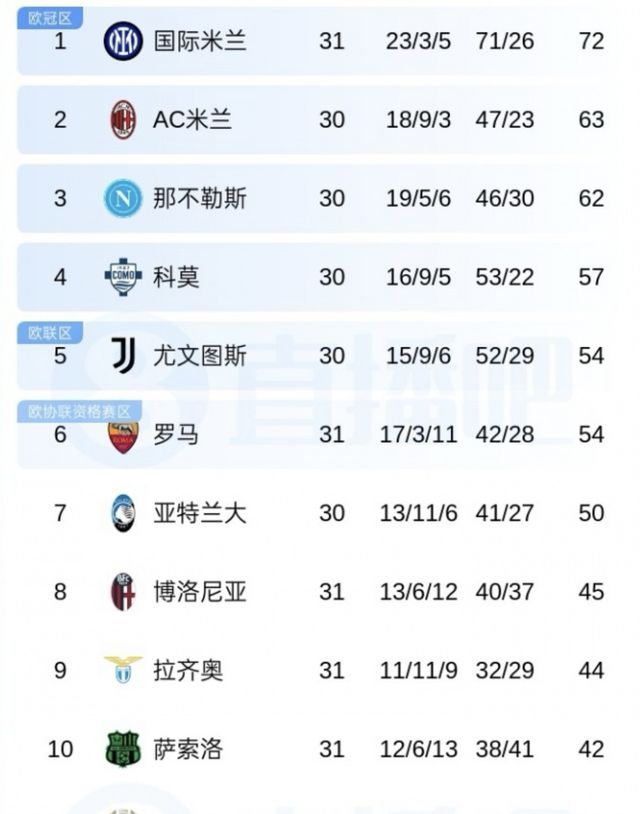 意甲第31轮,国米5-2轻取罗马,终结连胜3轮不胜,先赛9分领跑。罗马先赛仍54分,距离欧冠区3分。米兰本轮会对上那不勒斯。