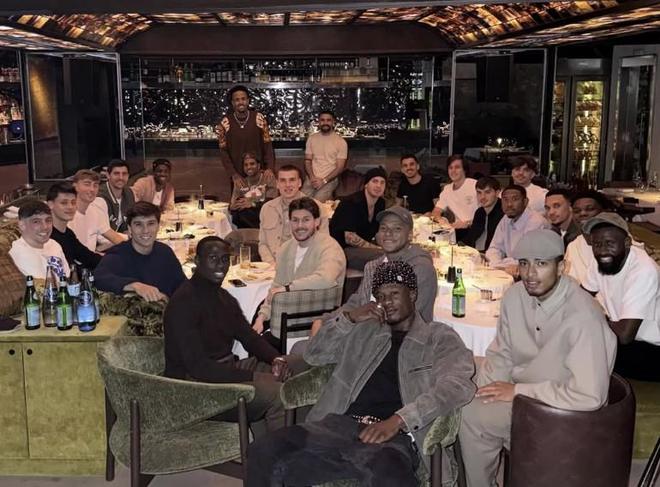 没带教练,皇马一线队所有球员举行了一次团队晚宴